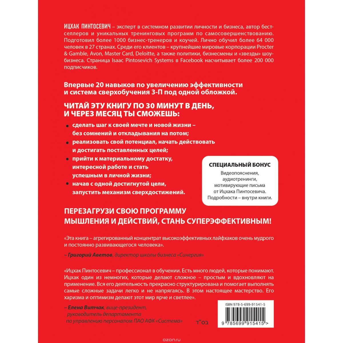 Как автомобилю необходим периодический техосмотр, так человеку нужна перезагрузка. Эта книга-тренинг за 30 дней поможет вам перезагрузить программы мышления и действий. К каждой главе есть видеопояснения от Ицкаха, а также7 аудиозаписей по 30 минут и бланки для заполнения. Вы научитесь решать, планировать и действовать. В результате скорость движения увеличится в разы. А вместе с ней и скорость достижений, то есть ваша эффективность.