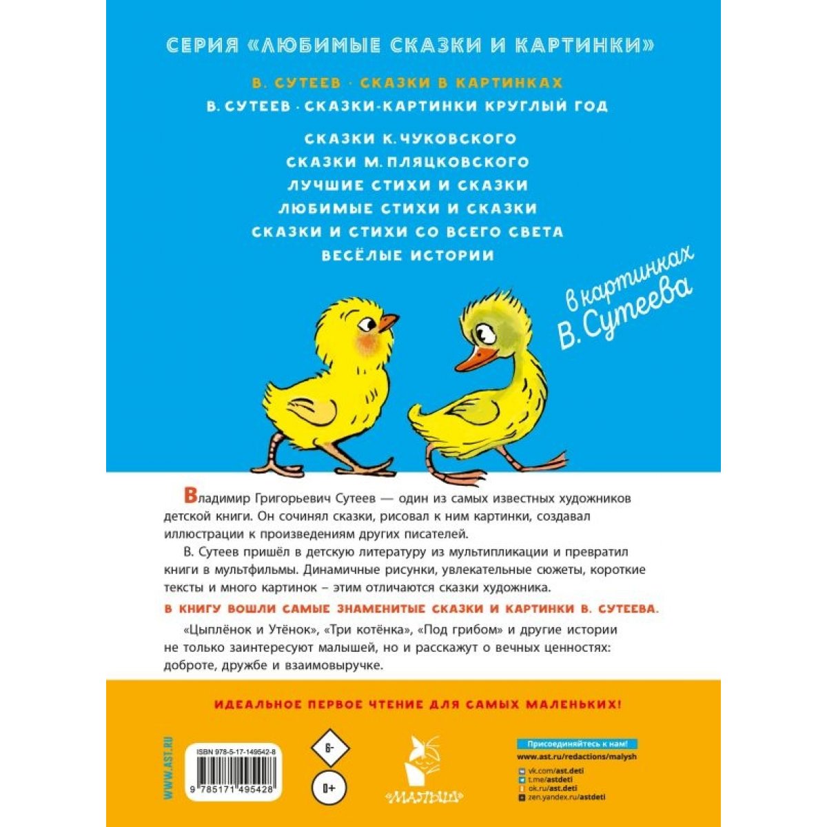 В. Сутеев пришёл в детскую литературу из мультипликации и превратил книги в мультфильм. Динамичные рисунки, увлекательные сюжеты, короткие тексты и много картинок – этим отличаются сказки художника.