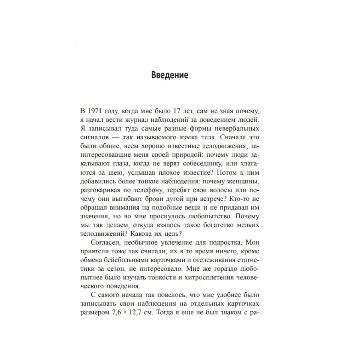 Подробно останавливаясь на каждой части тела от головы до пят, Джо Наварро раскрывает тайный смысл многих наших осознанных и бессознательных телодвижений.