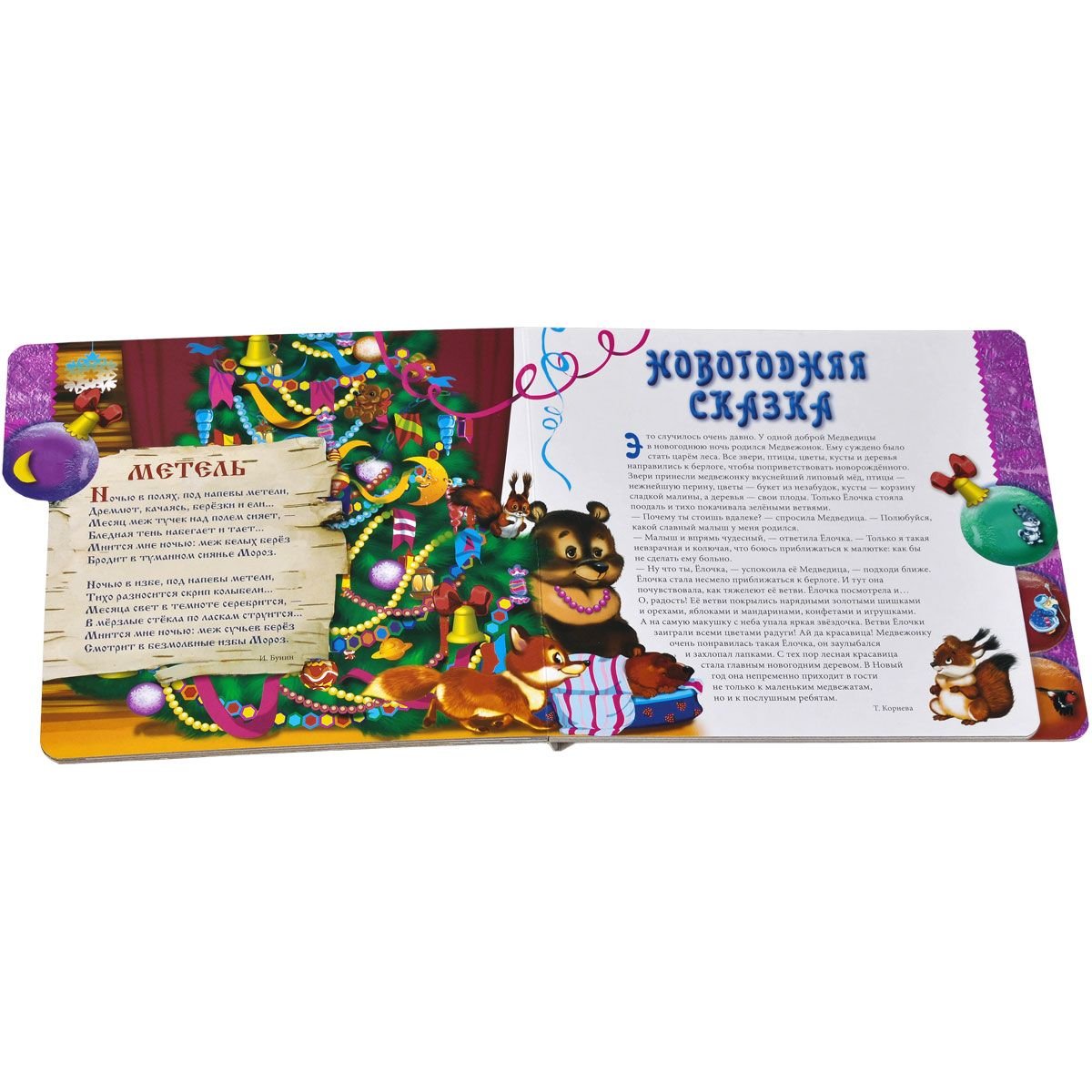 Сборник любимых произведений для самых маленьких! Здесь есть и известные волшебные сказки, и новогодние стихи. А по правому краю проходит индексная вырубка в виде красивых новогодних шариков. Нажмешь на шарик - и книга откроется на нужной странице. На обложке фольга и глиттер.