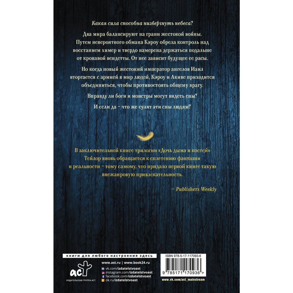 Какая сила способна низвергнуть небеса? Два мира балансируют на грани жестокой войны. Путем невероятного обмана Кэроу обрела контроль над восстанием химер и твердо намерена держаться подальше от кровавой вендетты. В от нее зависит будущее ее расы. Но когда новый жестокий император ангелов Иаил вторгается с армией в мир людей, Кэроу и Акиве приходится объединиться, чтобы противостоять общему врагу. Вправду ли боги и монстры могут видеть сны? И если да – что же сулят эти сны людям?