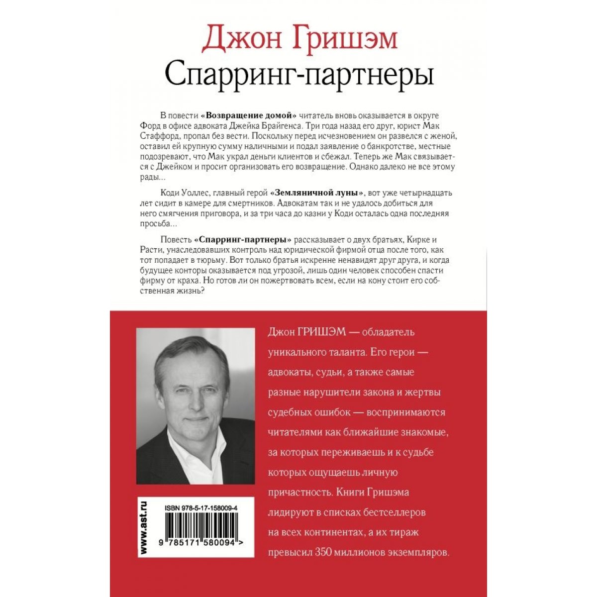 Повесть «Спарринг-партнеры» рассказывает о двух братьях, Кирке и Расти, унаследовавших контроль над юридической фирмой отца после того, как тот попадает в тюрьму. Вот только братья искренне ненавидят друг друга, и, когда будущее конторы оказывается под угрозой, лишь один человек способен спасти фирму от краха. Но готов ли он пожертвовать всем, если на кону стоит его собственная жизнь?