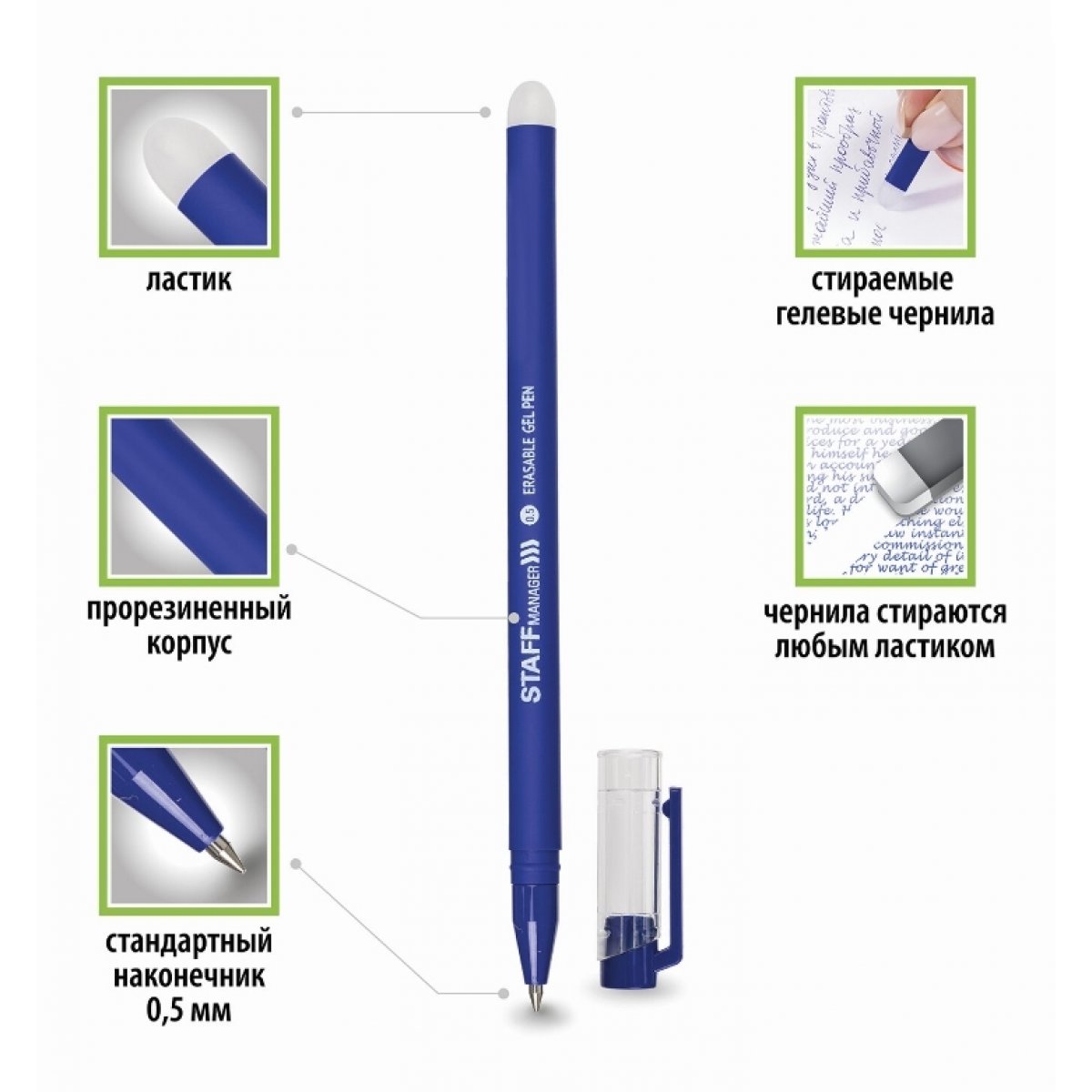 - Ручка гелевая стираемая "Manager EGP-656", синяя, + 5 сменных стержней