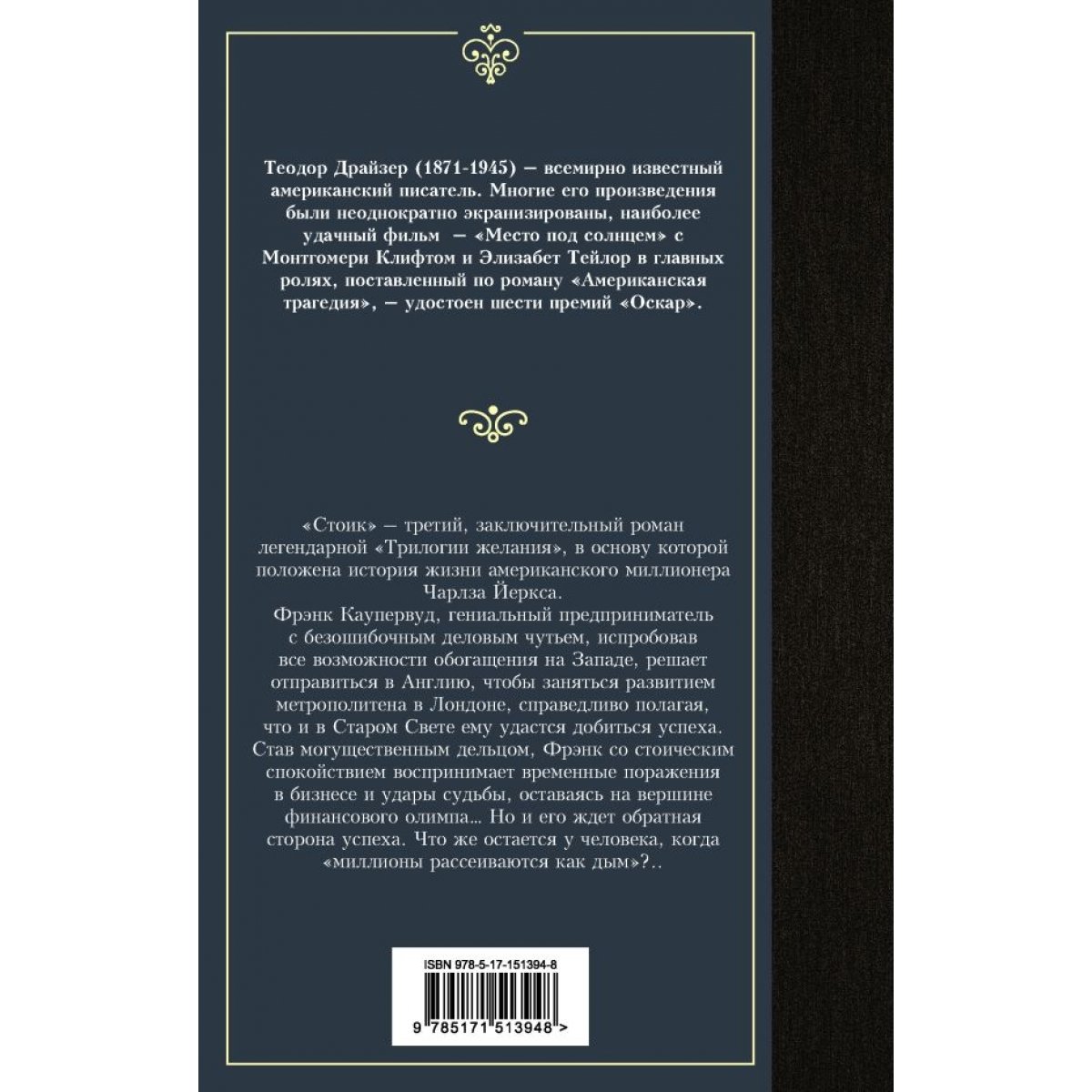 "Стоик" – третий, заключительный роман легендарной "Трилогии желания", в основу которой положена история жизни американского миллионера Чарлза Йеркса.