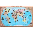 На карте «Страны и народы мира» показаны государства и их флаги. Подписаны столицы и некоторые иные города. Представители некоторых наиболее многочисленных и самобытных народов изображены в национальных костюмах. Каждая из фигурок людей не статична и являет собой небольшой сюжет. Музыкальные инструменты, различные аксессуары, с которыми они изображены, подчёркивают своеобразие национальных культур мира, а одежда – особенности природных условий проживания. На карте можно увидеть, какую закрытую и теплую одежду носят эскимосы и якуты, насколько легкая и простая она у жителей райских островов вечного лета – гавайцев и микронезийцев, какие длинные накидки, защищающие от непрерывного палящего солнца, носят обитатели пустынь – арабы и туареги. Масштаб иллюстраций позволил показать многие детали их костюмов, уникальный орнамент в одежде каждого народа. Масштаб карты 1:35 000 000.