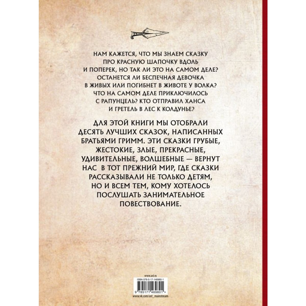 Для этой книги мы отобрали десять лучших сказок, написанных братьями Гримм. Эти истории — грубые, жестокие, злые, прекрасные, удивительные, волшебные — вернут нас в тот прежний мир, где сказки рассказывали не только детям, но и всем тем, кому хотелось послушать занимательное повествование.