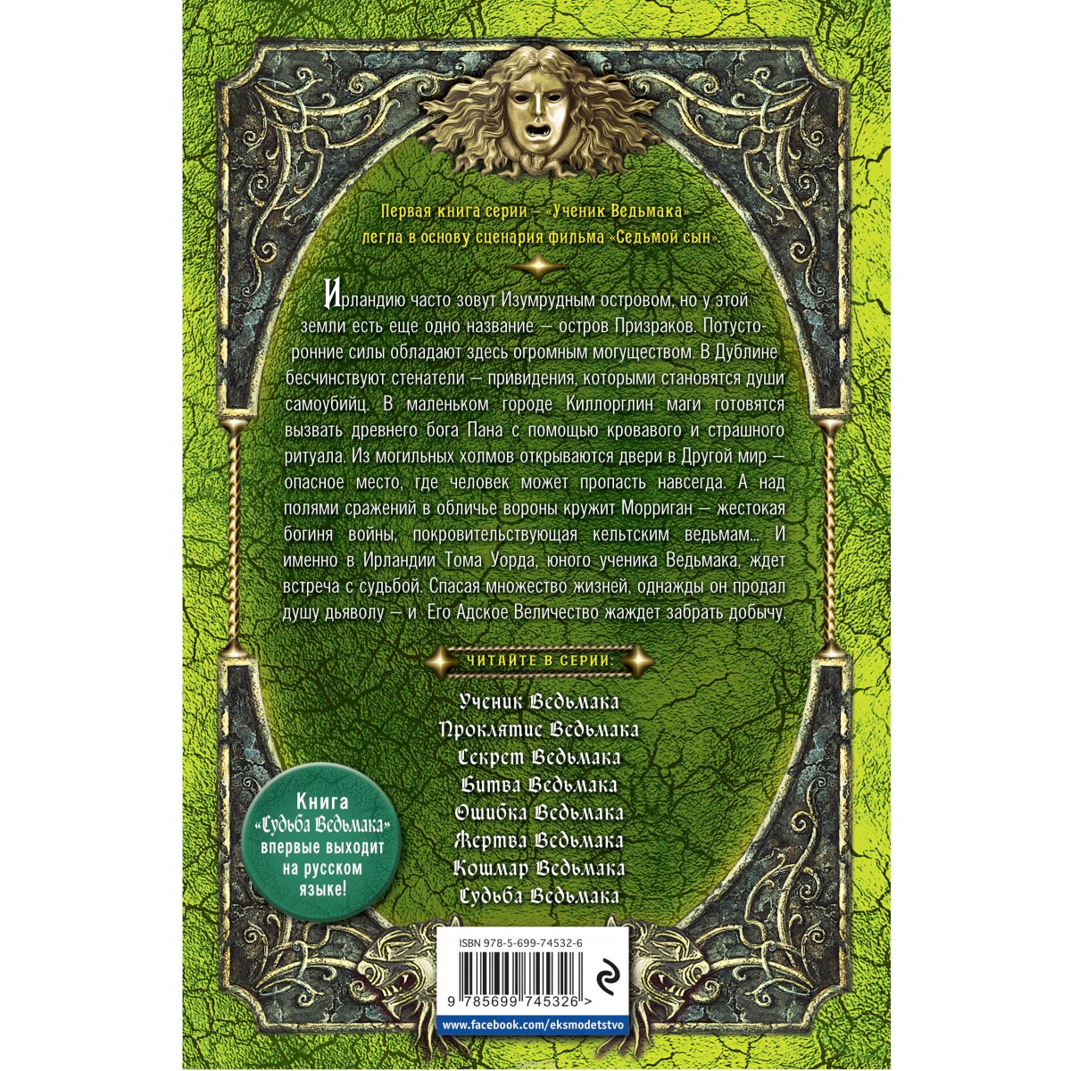 Ирландию часто зовут Изумрудным островом, но у этой земли есть еще одно название – остров Призраков. Потусторонние силы обладают здесь огромным могуществом. В Дублине бесчинствуют стенатели – привидения, которыми становятся души самоубийц. В маленьком городе Киллорглин маги готовятся вызвать древнего бога Пана с помощью кровавого и страшного ритуала. Из могильных холмов открываются двери в Другой мир – опасное место, где человек может пропасть навсегда. А над полями сражений в обличье вороны кружит Морриган – жестокая богиня войны, покровительствующая кельтским ведьмам… И именно в Ирландии Тома Уорда, юного ученика Ведьмака, ждет встреча с судьбой. Спасая множество жизней, однажды он продал душу дьяволу – и его Его Адское Величество жаждет забрать добычу. Книга "Судьба Ведьмака" впервые выходит на русском языке! Первая книга серии – «Ученик Ведьмака» – легла в основу сценария фильма «Седьмой сын».