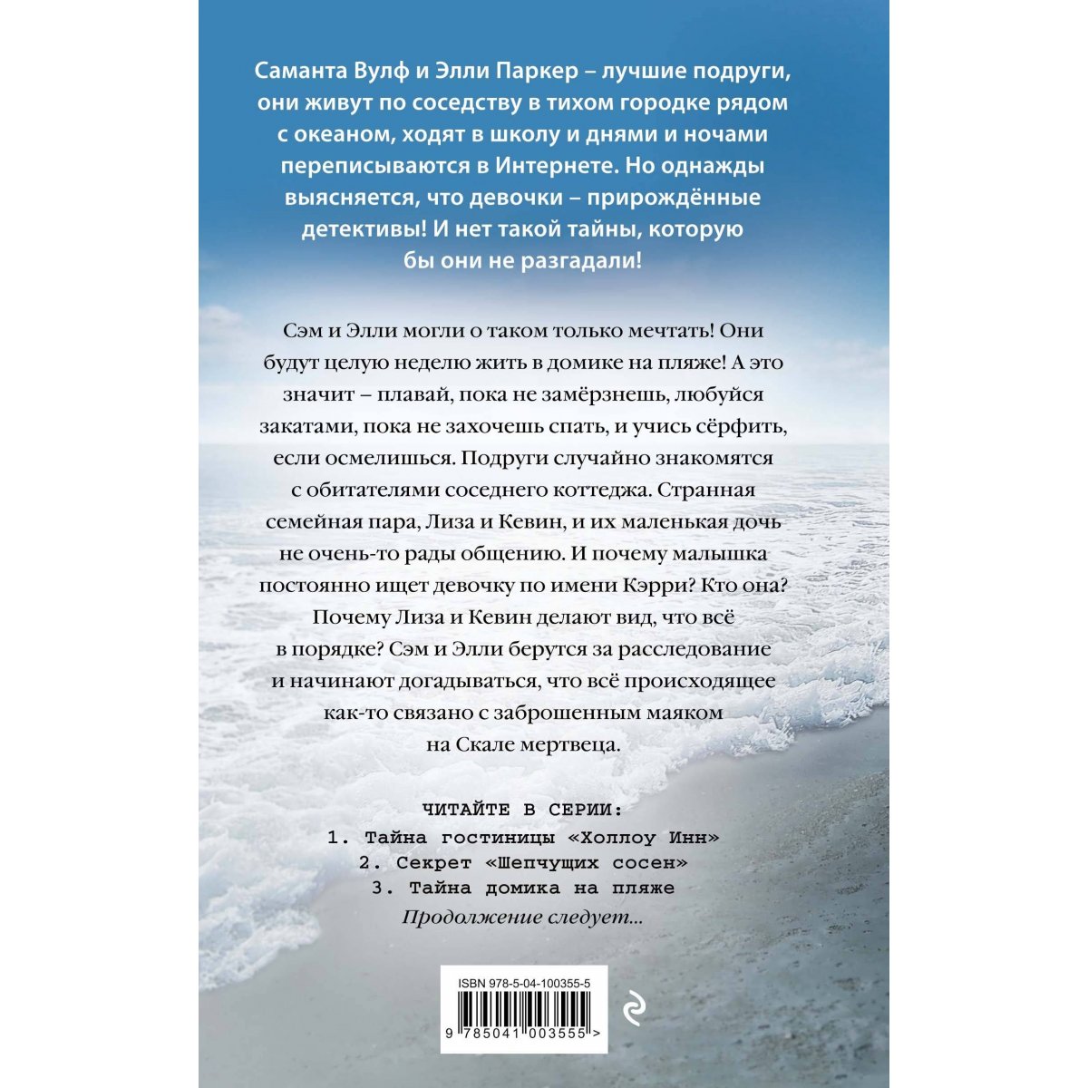 Саманте Вулф и Элли Паркер невероятно повезло! Подруги целую неделю будут жить в домике на пляже! Они смогут плавать сколько захотят, любоваться закатами на самом берегу океана и научатся сёрфить. А всё потому, что папе Сэм предложили работу в Древесной Бухте - маленьком островном городке. Сэм и Элли наслаждаются летним отдыхом и случайно знакомятся с обитателями соседнего коттеджа. Странная семейная пара, Лиза и Кевин, и их маленькая дочь Эрика не очень-то рады общению. И почему малышка постоянно ищет девочку по имени Кэрри? Кто она? Почему Лиза и Кевин делают вид, что всё в порядке? Сэм и Элли берутся за расследование и начинают догадываться, что всё происходящее как-то связано с заброшенным маяком на Скале мертвеца.