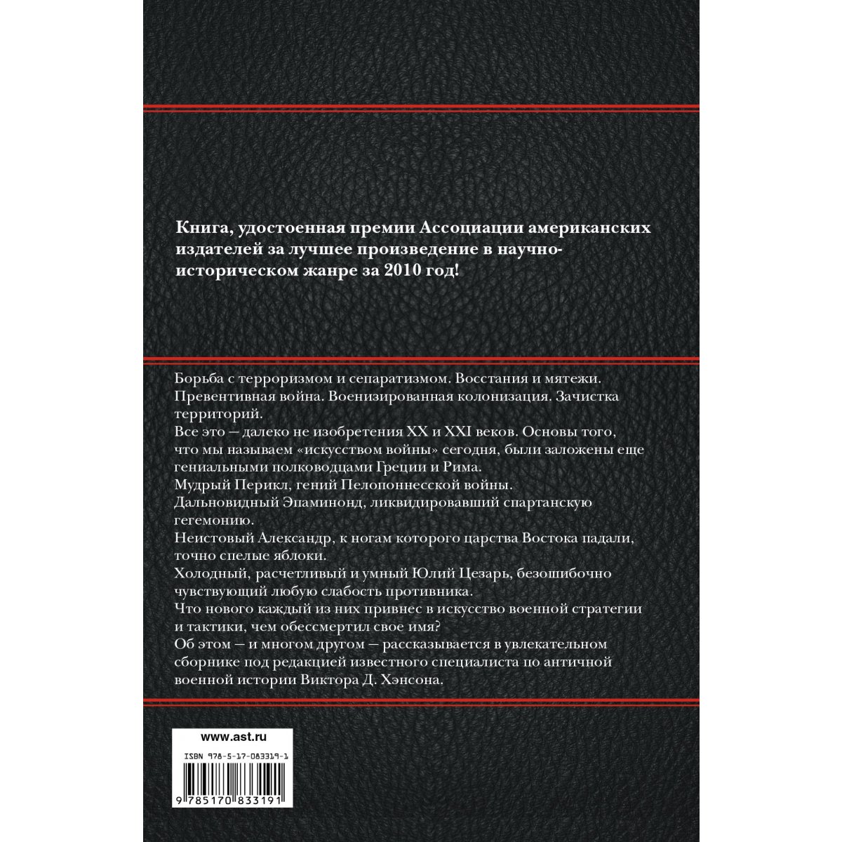 Борьба с терроризмом и сепаратизмом. Восстания и мятежи. Превентивная война. Военизированная колонизация. Зачистка территорий. Все это - далеко не изобретения ХХ и ХХI веков. Основы того, что мы называем «искусством войны» сегодня, были заложены еще гениальными полководцами Греции и Рима. Мудрый Перикл, гений Пелопоннесской войны. Дальновидный Эпаминонд, ликвидировавший спартанскую гегемонию. Неистовый Александр, к ногам которого царства Востока падали, точно спелые яблоки. Холодный, расчетливый и умный Юлий Цезарь, безошибочно чувствующий любую слабость противника. Что нового каждый из них привнес в искусство военной стратегии и тактики, чем обессмертил свое имя? Об этом - и многом другом - рассказывается в увлекательном сборнике под редакцией известного специалиста по античной военной истории Виктора Д.Хэнсона.