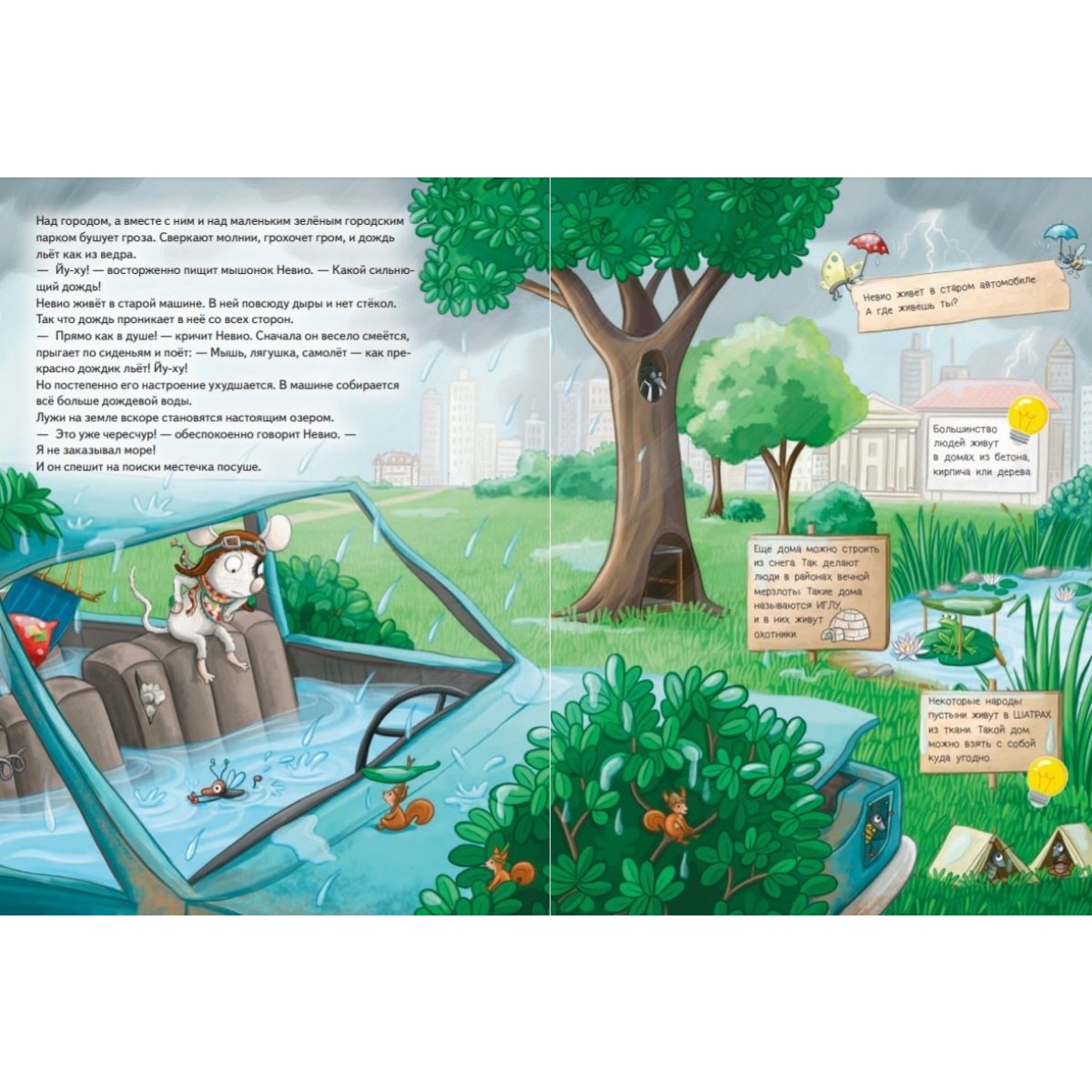 Чтобы не прятаться от дождя под листьями, умный мышонок Невио хочет построить себе настоящий дом. Все друзья готовы ему помочь. Только, как на самом деле строится дом? При первой попытке сложить стену, все получается наперекосяк, камни слишком тяжелы, а помощникам нужно подсказывать, как и что делать правильно. На каждой стройке есть экскаватор, кран и множество различных рабочих. Но как им научиться работать, помогая друг другу? Полезная сказка рассказывает детям, как мышонок и его друзья учатся строить дом, и что из этого получается.