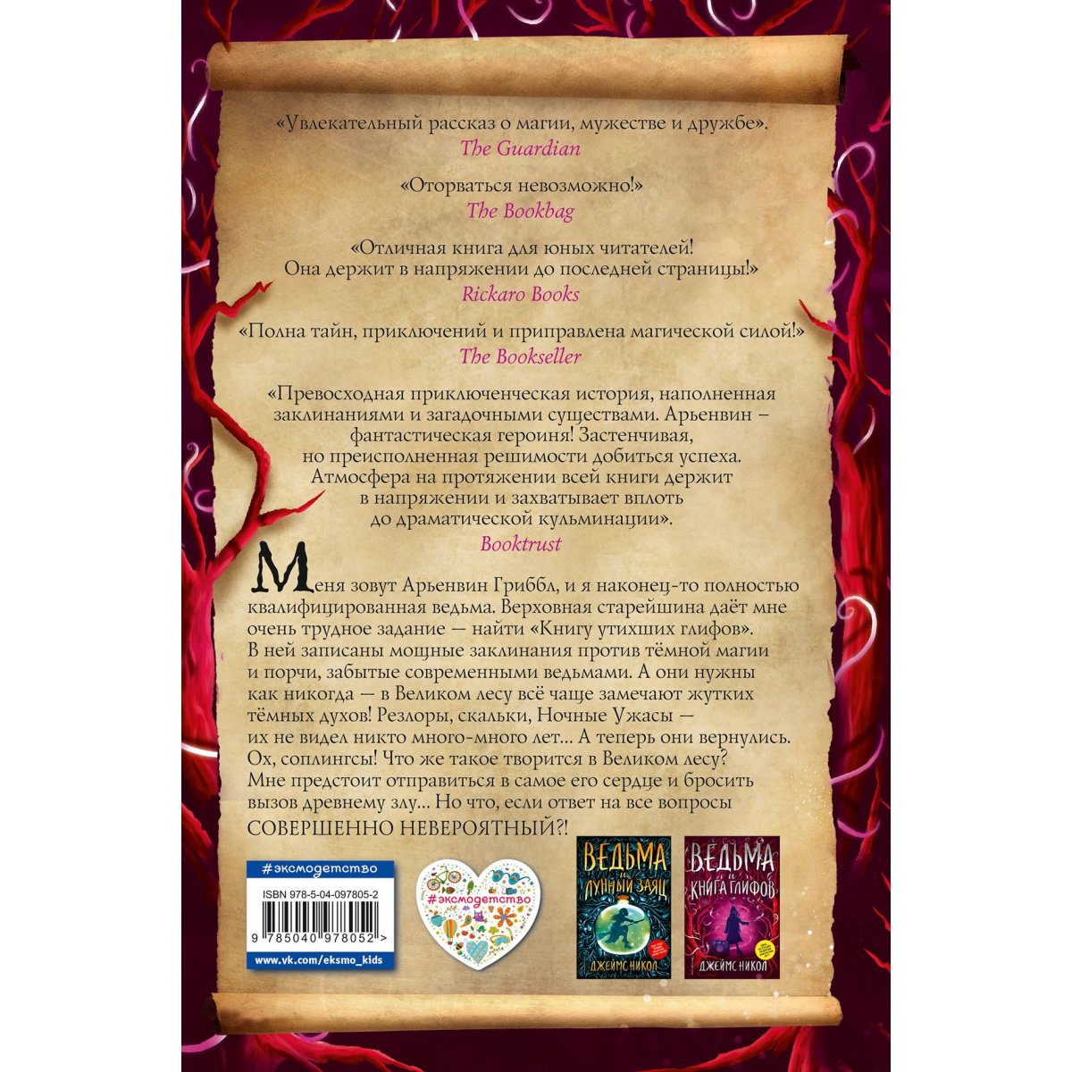 Арьенвин Гриббл получила долгожданную серебряную звезду и теперь она наконец-то полностью квалифицированная ведьма! И ею заинтересовалась сама верховная старейшина! Она дала девочке ответственное тайное задание: найти в Великом лесу "Книгу утихших глифов". В ней записаны мощнейшие заклинания, забытые современными ведьмами. Они способны помочь ведьмам Хайлунда выйти победителями из затянувшейся войны. А ведь кроме этого у Арьенвин как никогда много работы в Заклинариуме. Всё чаще жители Лалля жалуются на тёмных духов, которых никто не видел на протяжении многих лет: резлор, Ночные Ужасы, скальк... Что же такое творится в Великом лесу? Арьенвин отправляется туда на поиски ответов. Но к ТАКОМУ не был готов никто! Для среднего школьного возраста.