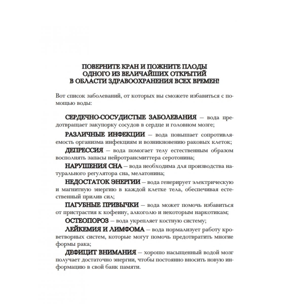 Результаты клинических и научных исследований роли воды для организма человека доказывают, что вода — самая простая вода! — поможет вам решить любые проблемы со здоровьем.