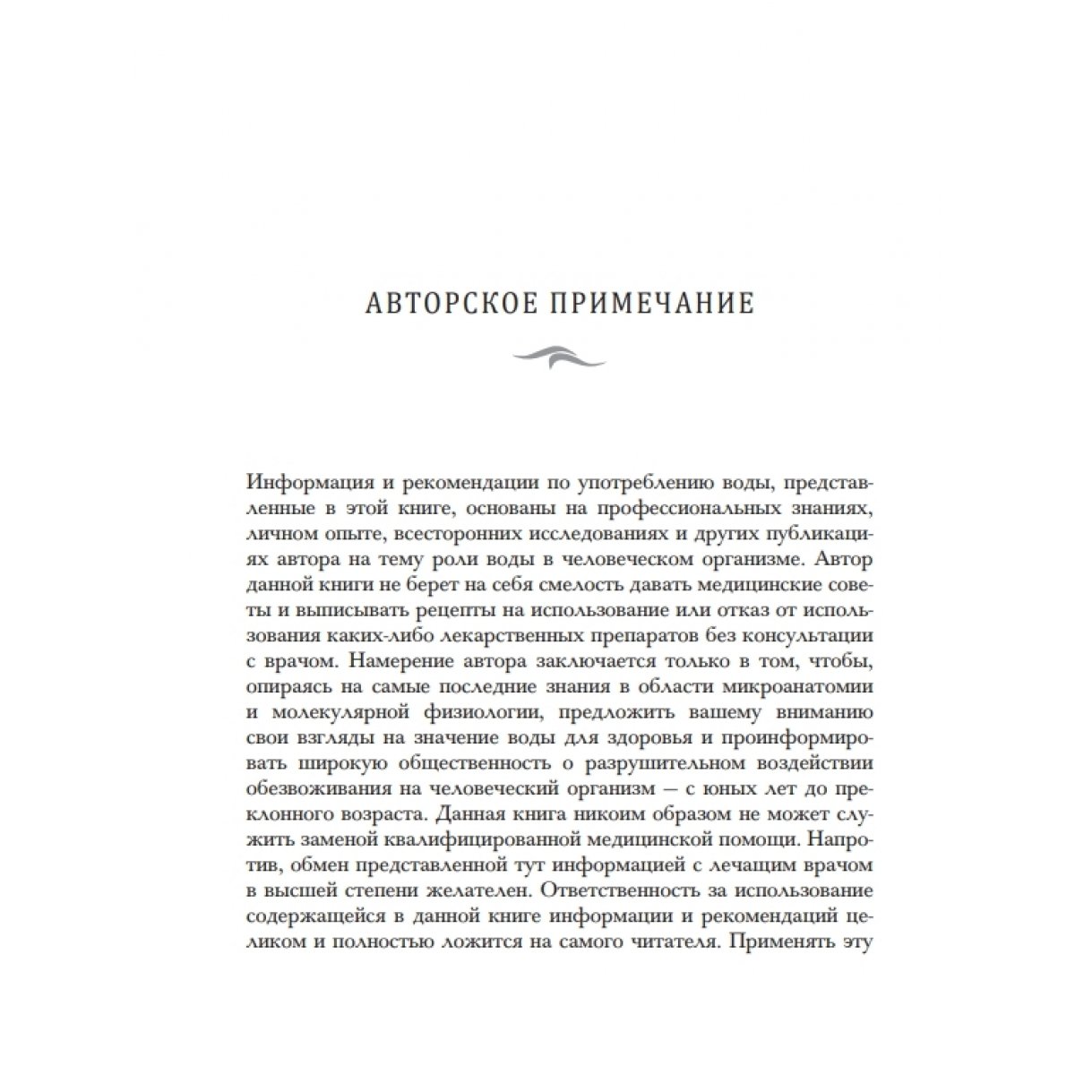Всемирно известный врач и автор книг Ф. Батмангхелидж утверждает, что элементарное упорядочение ежедневного потребления воды и соли избавит вас от десятков болезней. Вы сможете отказаться от дорогостоящих лекарств и насладиться прекрасным здоровьем и самочувствием, если будете следовать его советам.