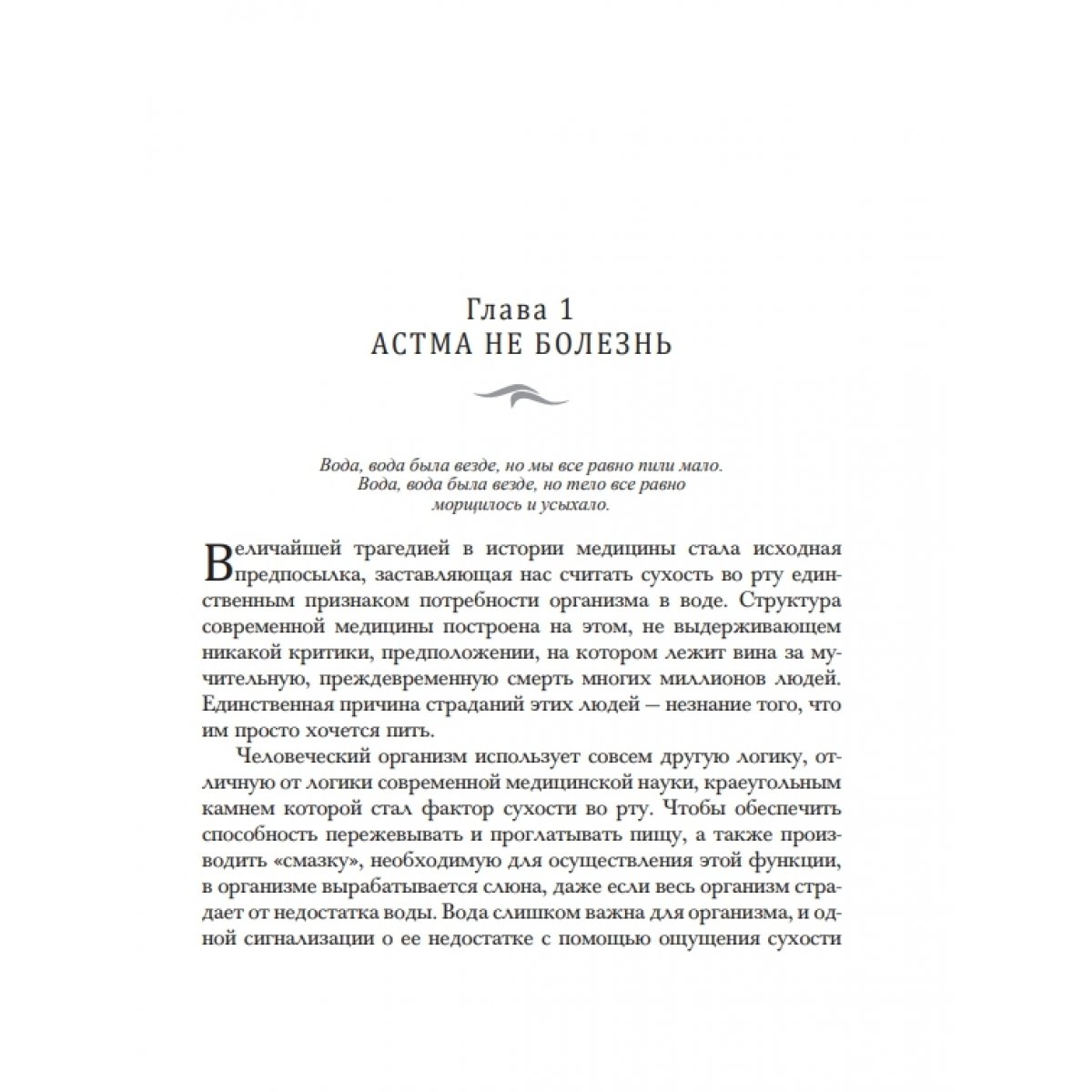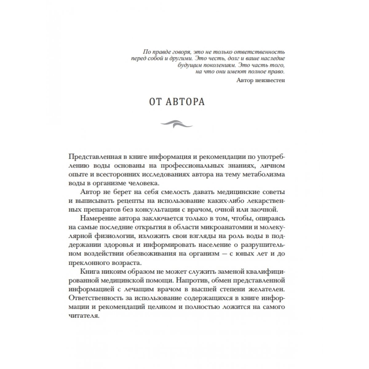 "Как фармаколог и дипломированный диетолог я рассказываю о вашей книге пациентам, использующим стероидные ингаляторы, консультирую и убеждаю их в необходимости полного насыщения организма водой. Результаты просто поразительные!"
