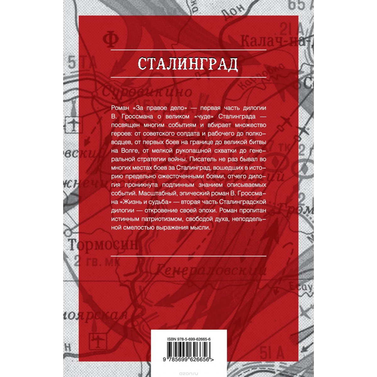 Роман «За правое дело» - первая часть дилогии В. Гроссмана о великом «чуде» Сталинграда - посвящен многим событиям и вбирает множество героев: от советского солдата и рабочего до полководцев, от первых боев на границе до великой битвы на Волге, от мелкой рукопашной схватки до генеральной стратегии войны. Писатель не раз бывал во многих местах боев за Сталинград, вошедших в историю предельно ожесточенными боями, отчего дилогия проникнута подлинным знанием описываемых событий. Масштабный, эпический роман В. Гроссмана «Жизнь и судьба» - вторая часть Сталинградской дилогии - откровение своей эпохи. Роман пропитан истинным патриотизмом, свободой духа, неподдельной смелостью выражения мысли.