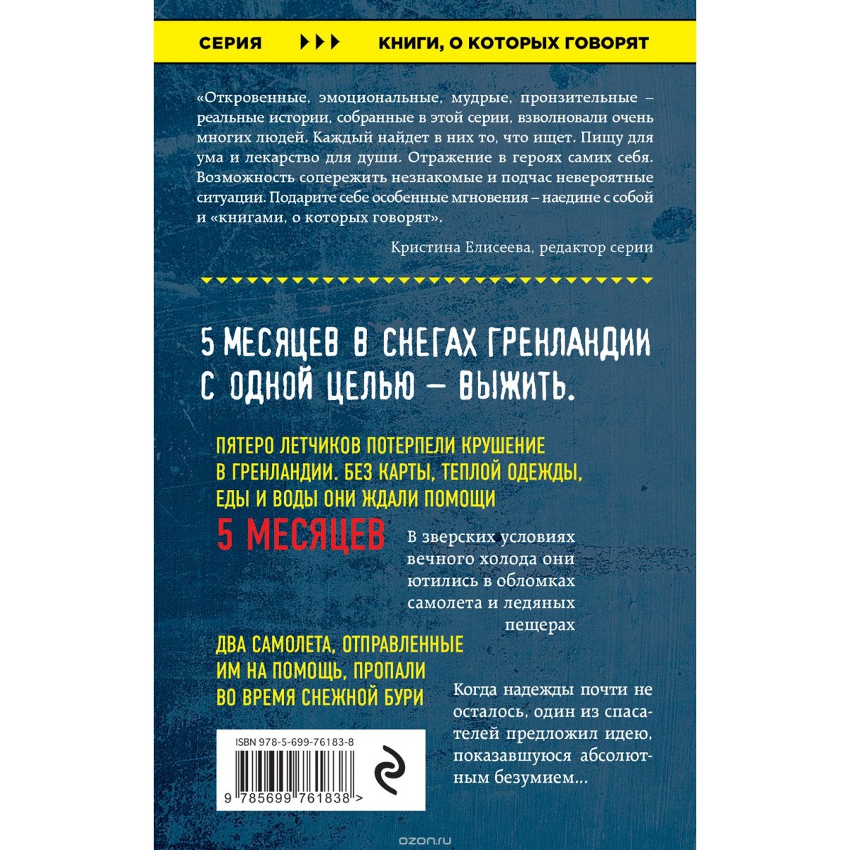 О КНИГЕ 5 месяцев в снегах Гренландии. Ради одной цели - выжить. Пятеро летчиков потерпели крушение в Гренландии. Без карты, теплой одежды, еды и воды они ждали помощи 5 месяцев. В зверских условиях вечного холода, они ютились в обломках самолета и ледяных пещерах. Два самолета, отправленных им на помощь, пропали во время снежной бури. Когда надежды почти не осталось, один из спасателей предложил идею, показавшуюся абсолютным безумием... ОБ АВТОРЕ Митчелл Зукофф - профессор журналистики Бостонского университета, финалист Пулитцеровской премии в номинации журналистское расследование, обладатель премии The Livingston Award в номинации Международный репортаж, премии The Heywood Broun Award. Член группы Брилла "Все звезды", объединившую шестьдесят двух американских и иностранных репортеров, обозревателей и критиков, названных "лучшими бизнес-обозревателями". Зукофф - бывший специальный репортер газеты The Boston Globe. До того, как начал работать в этой газете в 1989 году был...